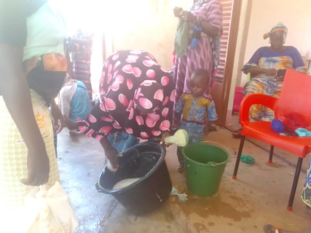 La session s’est poursuivie par un atelier pratique de fabrication de savon liquide, permettant aux participantes d’acquérir un savoir-faire générateur de revenus. Cette approche combinée contribue à la fois à leur autonomisation économique et à leur inclusion citoyenne.